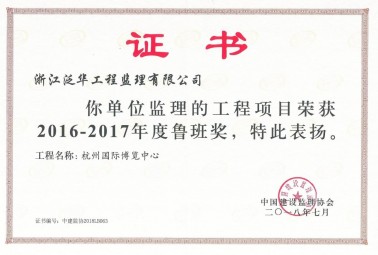 共創(chuàng)魯班獎工程監(jiān)理企業(yè)榮譽證書